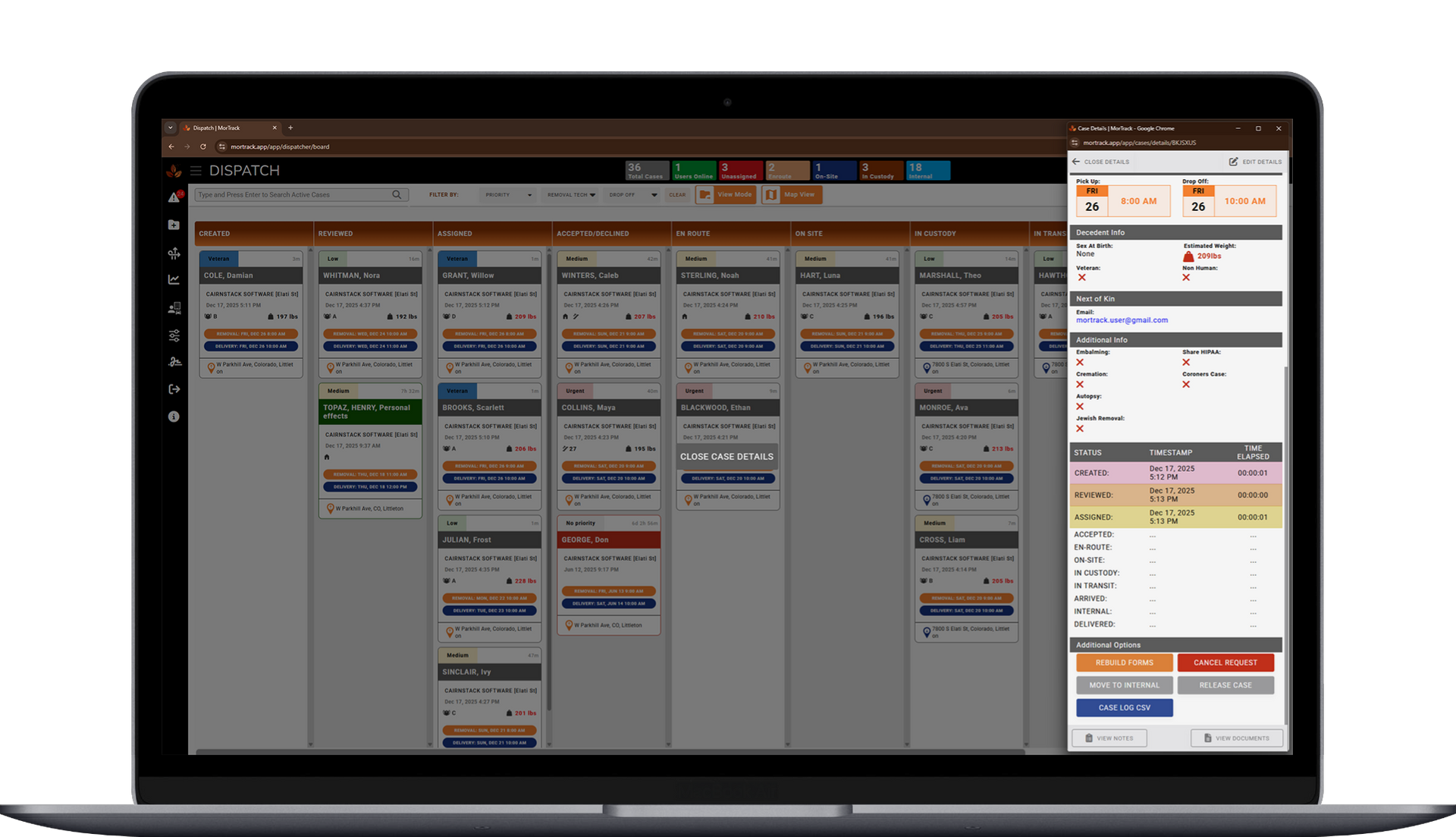 MorTrack gives dispatchers and admins a clear view of what’s happening: